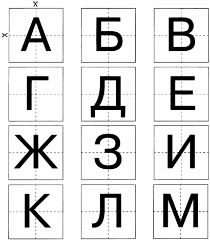 Наклей эти листы на картон и разрежь каждый квадрат на 4 части.
