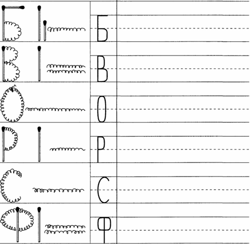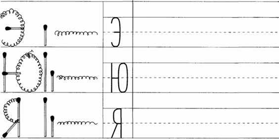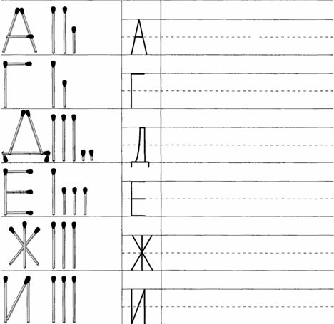 Сложи буквы из спичек (палочек) и толстой нитки. Напиши эти буквы.