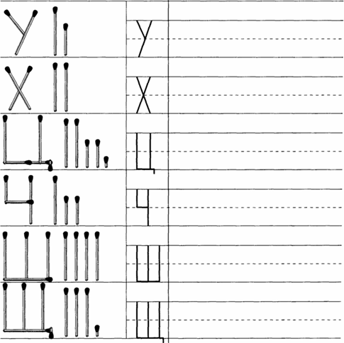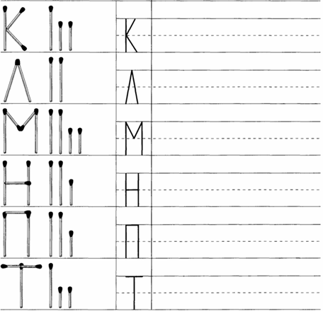 ложи буквы из спичек (палочек). Напиши эти буквы.