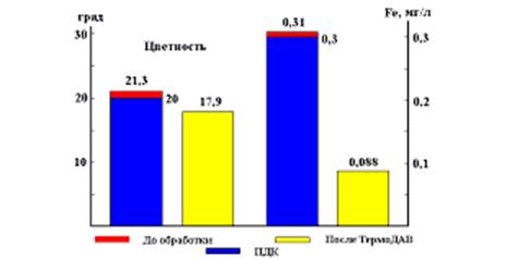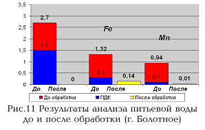 Рис. 2 Результаты анализа питьевой воды до и после обработки (г. Болотное)