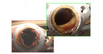 Рис3 Состояние системы водоснабжения до и после обработки (материал труб - нержавеющая сталь)