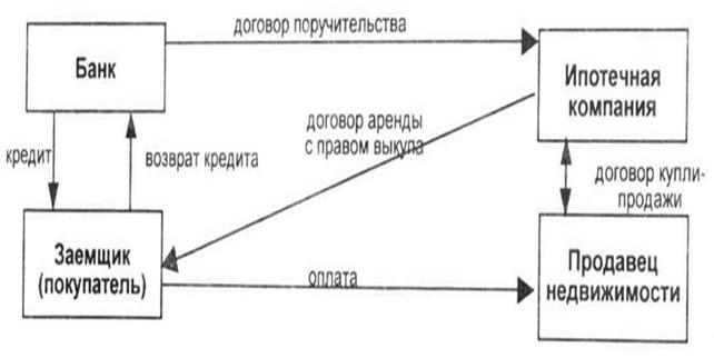 Собственником квартиры до момента погашения кредита, при использовании данной схемы, чаще всего являлась специализированная компания (дочерняя структура банка), которая выступала поручителем заемщика перед банком, и в случае невозврата кредита заемщиком, брала на себя обязательства его погасить. Отношение размера кредита к стоимости квартиры составляло в среднем 70 % при сроке кредита до двух лет, 60% - от трех до пяти лет, 50% - от шести до десяти лет. При задержке платежа (сверх установленного срока) банк расторгал договор с клиентом в одностороннем порядке, заемщику при этом в лучшем случае возвращалась лишь часть первоначального взноса (до 50%). Процедура получения кредита являлась для заемщика достаточно дорогостоящей - оплата услуг банка, страхование недвижимости и другие сопутствующие расходы составляли в среднем 15-20 % от стоимости квартиры. Жесткие условия кредитования существенно ограничивали круг потенциальных заемщиков.