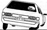«Здесь изображена машина со спущенным колесом. На ее заднем стекле — наклейка с призывом голосовать за партию, к сожалению, уже невозможно разобрать, за какую. Как Вы пологаете, с символикой какой партии наиболее велика опасность получить спущенное колесо?» Почти по
