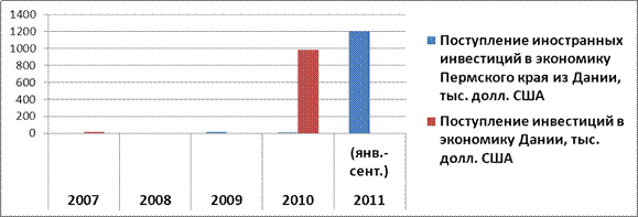 Поступление иностранных инвестиций в экономику Пермского края из Дании, тыс. долл. США |