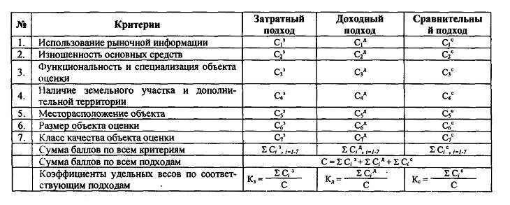 118. На основании проведенного анализа результатов оценки, полученных различными подходами, оценщиком определяются веса для каждого из подходов в разрезе основополагающих критериев.