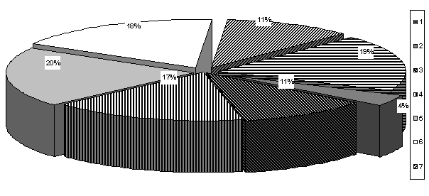 1. В аренду сторонним организациям, которых насчитывается около 10 тысяч сдано 3385 тыс. кв. м федеральных площадей, что составляет около 5% от общего количества проинвентаризированных площадей.
