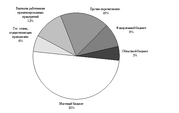 Рис. 4.6. Распределение средств, полученных от приватизации по источникам доходов