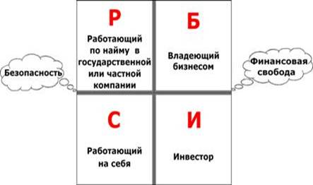 Финансовая свобода лежит в квадрантах Б и И. Если вы занимаетесь деятельностью только из квадрантов Р и С - то финансовой свободы вам не достичь.