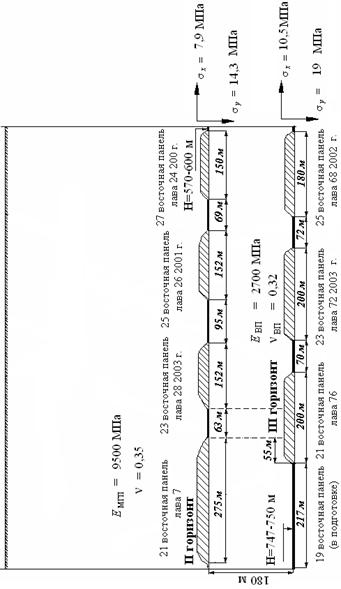 · учет влияния выработанных пространств и взаимовлияния выемочных горизонтов при одновременной работе лав непосредственно друг над другом.
