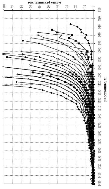 На рис.6-7 представлены данные натурных измерений параметров состояния подготовительных выработок лавы 7, полученных на рудниках РУП ПО “Беларуськалий”.