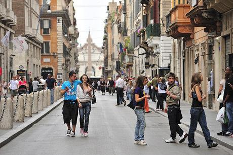 Главной торговой улицей Рима считается Via del Corso, и начать демократичный шопинг стоит именно здесь. Улица почти целиком состоит из магазинов и протягивается от Piazza del Popolo (Народная площадь) до центральной площади Рима — Piazza Venezia. Среди большого количества марок мужской, женской, спортивной и молодежной одежды, представленных на Via del Corso, есть немало и хорошо знакомых, например Accessorize, Benetton, Sisley, Puma, Intimissimi, Calzedonia, Diesel, Miss Sixty, Zara и др.