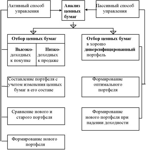 • политические и психологические аспекты инвестирования. После определения структуры портфеля необходимо выбрать схему ее дальнейшего изменения. Для этого может быть выбрано несколько подходов. Рассмотрим наиболее часто используемый.
