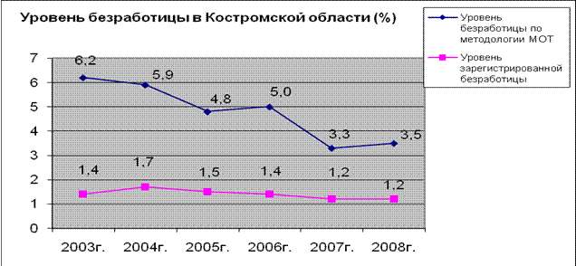 В 2009 году ожидается постепенное снижение численности занятых в организациях большинства видов экономической деятельности. Значительные увольнения работников ожидаются в г. Костроме ( завод «Мотордеталь», , ), г. Мантурово ( фанерный комбинат»), г. Нерехте ( льняная мануфактура», НПП «Нерехтский механический завод» филиал ФГУП «»ГНПП «Базальт). Сохранится тенденция увеличения среди безработных граждан лиц предпенсионного возраста, женщин, молодежи.
