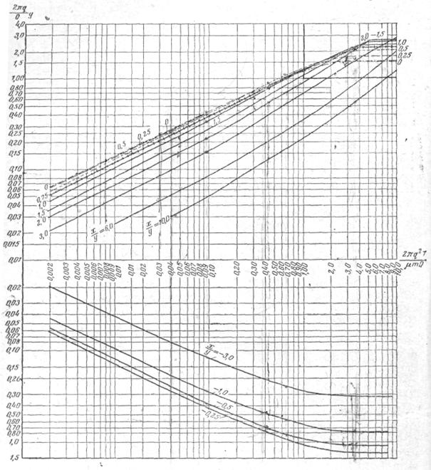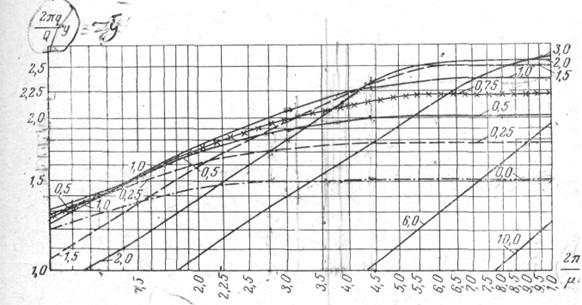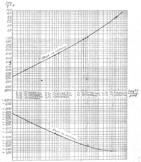 в) так как величина Qнп известна из расчета притока воды к дрене, то по формуле (3.14) определяют величину А, а из табл. 8.2 соответствующую ей величины