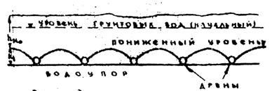 Рис. 3.5. Схема депрессионных воронок, формирующихся вокруг дрен