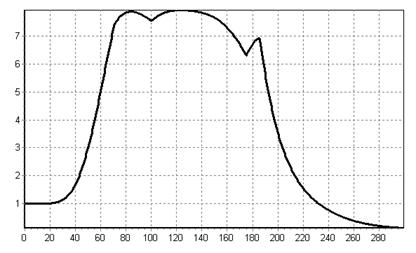 В результате синтеза была получена Парето-область (рис.5.1), являющаяся решением поставленной задачи. В таблице 5.1 представлены значения функционалов (3.7) и (3.8), определяющие полученное множество Парето.