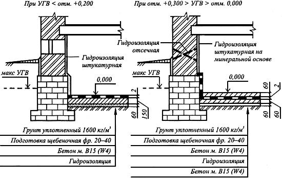 Методы защиты конструкций от различных видов увлажнения приведены на рис.5.1-5.4.