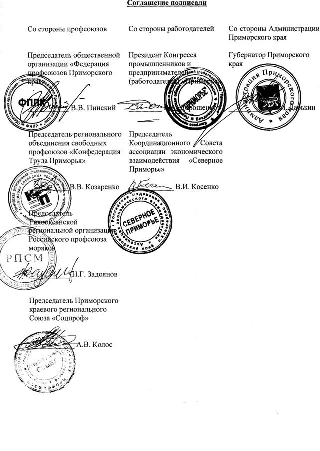 по Соглашению между профсоюзами, работодателями и Администрацией Приморского края о регулировании социально-трудовых отношений