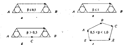 Маршруты движения могут быть маятниковые и кольцевые. Схемы маятниковых маршрутов показаны на рисунке 2. При маятниковом маршруте путь следования автомобиля между двумя грузопунктами неоднократно повторяется.