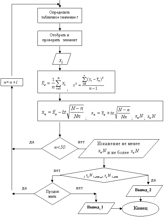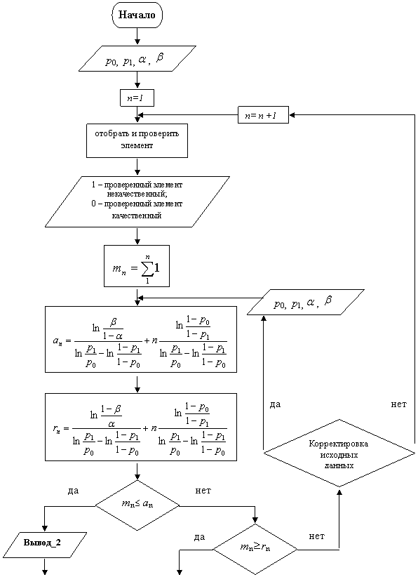 2.4. Методика проведения последовательной статистической аудиторской выборки при проверке данных бухгалтерского учета и анализе внутреннего контроля проверяемого экономического субъекта. При проведении аудиторской проверки осуществляются два вида аудиторских процедур – тесты средств внутреннего контроля и процедуры проверки по существу. Тесты средств внутреннего контроля проводятся с целью получения аудиторских доказательств в отношении надлежащей организации и эффективности функционирования систем бухгалтерского учета и внутреннего контроля. Процедуры проверки по существу проводятся для получения доказательств в отношении существенных искажений бухгалтерской (финансовой) отчетности. Исследование показало, что для реализации данных задач с помощью аудиторской выборки должна быть разработана методика проведения аудиторской выборки, представляющая собой четкий алгоритм, как способ решения поставленной задачи, точно предписывающий, как и в какой последовательности получить результат, однозначно определяемый исходными данными.