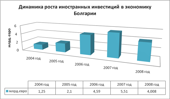 На протяжении последних 4 лет ( гг), объем непосредственных зарубежных инвестиций возрос более чем на 250%. Такой результат стимулирован совершенствованием бизнес среды и повышением эффективности производственных ресурсов, а также оптимистичными прогнозами развития Болгарии как европейского государства. (Диаграмма 25). Основными источниками инвестирования явились Австрия (36.6%), Объединенное Королевство (10.6%) и Швейцария (10.0%), которые размещали свой капитал в следующих секторах: транспорт, финансовый сектор, недвижимость, бизнес услуги и коммуникации. [24].