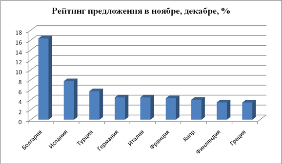 По количеству предложений объектов недвижимости на российском рынке лидирует Болгария. Проведенное в первом квартале 2009 года порталом «*****» исследование активных игроков на российском рынке зарубежной недвижимости показало, что предложение болгарской недвижимости во много раз превышает другие страны. (Диаграмма 32).