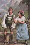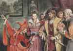 Сцена из оперетты Карла Милёкера "Заколдованный замок". Рисунок к спектаклю "Раймундтеатра", Вена. Коней XIX в. |