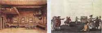 Эскиз декораций к спектаклю "Власть тьмы" (пьеса ). Художник Шишков. Александрийский театр, СанктПетербург. Пьеса Аени Дидро "Отец семейства" на сцене "КомедиФрансез",Париж. XVIII в. |