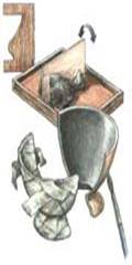 Бутафория. Сначала бутафор лепит предмет из глины или пластилина, заливает его гипсом. Когда гипс застынет, его снимают, разрезав пополам. Получается форма из двух половин, которая затем с помощью мучного клея выклеивается кусочками бумаги во много слоев. Высохшие в форме половинки вынимают, соединяют клеем и тонкой проволокой, грунтуют и расписывают. |