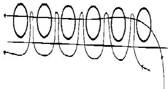 Этот простенький шов, известный даже тому, кто не питает склонности к шитью, с успехом можно применить и для вышивки бисером. Выполняется он так. Закрепить нить с изнанки и вывести иглу на лицевую сторону ткани, иглу продеть в отверстие бисеринки и ввести в ткань рядом с бусиной (рис. 3). Затем снова вывести иглу на лицевую сторону, выполнив маленький стежок с изнанки, и нанизать вторую бисеринку.