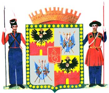 Герб Екатеринодара. (Денисович) Черник. Утвержден императором Николаем I 3 сентября 1849 г. С 1996 г. герб г. Краснодара.