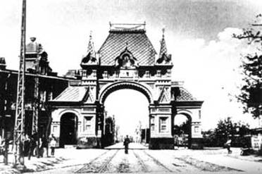 Триумфальная Александровская арка, водруженная в честь посещения Екатеринодара Александром III в 1888 г. Архитектор . Фото начала ХХ в. (Арка была разобрана в 1928 г.).