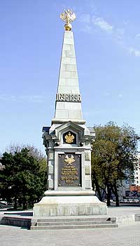 Восстановленный обелиск 200-летию Кубанского казачьего войска. Автор проекта - архитектор . (Обелиск был открыт в 1897 г., демонтирован в 1920 г. Восстановлен в 1999 г.).