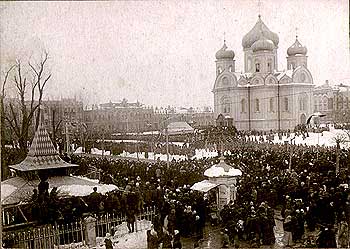 Соборная площадь Екатеринодара в день празднования 300-летия царствования Дома Романовых. 21 февраля 1913 г.