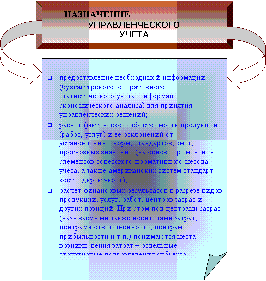 Таким образом, исходя из рассмотренных выше особенностей управленческого учета, его назначение сводится к следующему (рисунок 5):