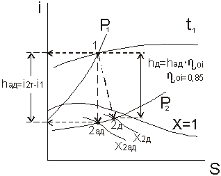 - и температурой насыщения (t1н) при давлении свежего пара (Р1), поступающего в турбину t1.