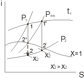 Рисунок 2.5 – К расчету конечной влажности пара.