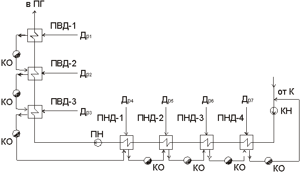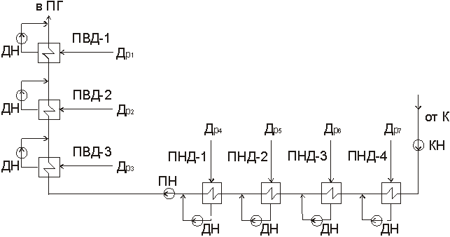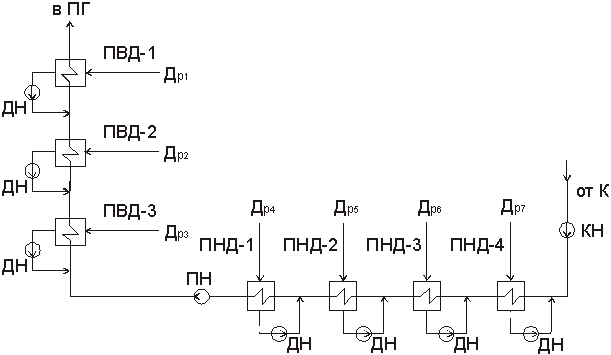 При распределении степени подогрева между отдельными подогревателями применяется закон равной степени подогрева:
