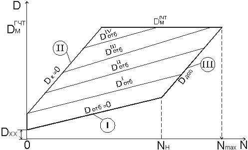 Точка II, соответствующая состоянию пара на выходе из ЦВД, определяется пересечением горизонтали, проходящей через нижний уровень использованного теплопадения в ЦВД, с изобарой РІІ.