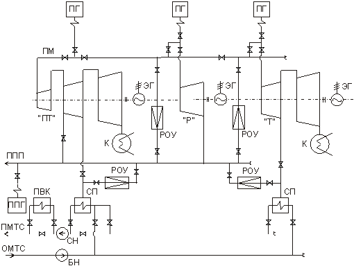 - выбор турбин и парогенераторов в соответствии с заданной тепловой и электрической нагрузкой;