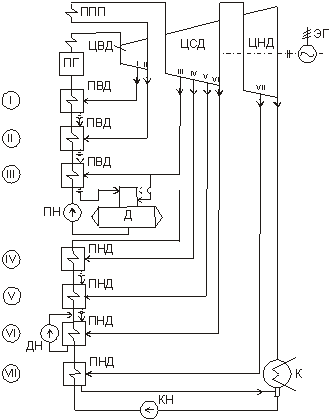 - расчет тепловой схемы, который производится в следующей последовательности: