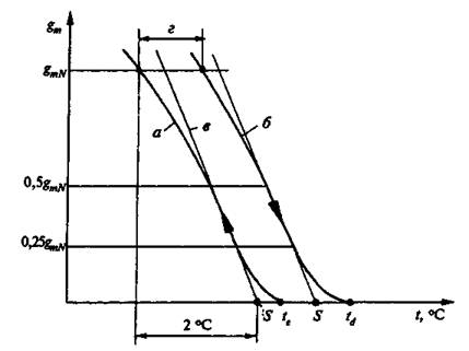 8.5.9 Основываясь на кривых (рисунок 4), записывают разницу между ожидаемыми температурами (5.2.7) в точках S и температурой закрытия td или открытия te клапана.