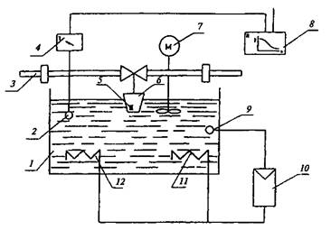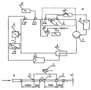 Испытание регулятора температуры на прочность при вращении должно проводиться в соответствии со схемой, показанной на рисунке 13, при температуре воды (90±2) °С и статическом давлении 0,1 МПа в циркуляционном контуре теплоносителя. Спустя 20 мин после начала испытания рукоятку регулятора температуры необходимо повернуть в крайнее минимальное положение. В течение 30 с прикладывают крутящий момент 8 Н×м в ту же сторону.