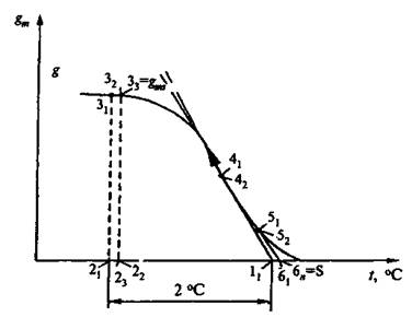 Строят точку gm x1 на кривой закрытия 4 (рисунок 8). К температуре, которая соответствует этому потоку, прибавляют 1,5 °С. Для полученной температуры определяют величину потока.