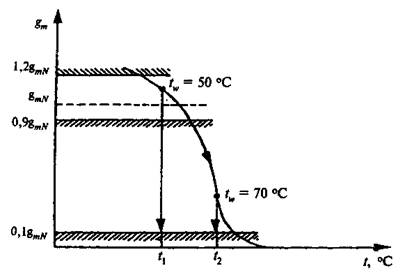 Затем увеличивают температуру воздуха с шагом (3+0,2) °С и измеряют время tуст, необходимое потоку для достижения величины gm x2 (рисунок 16).