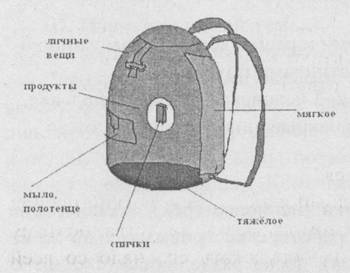 Учитель предлагает нескольким ученикам продемонстрировать укладку рюкзака из заранее приготовленного снаряжения. Кроме того, в комплекте предметов должны быть и те, которые учащиеся не должны брать в рюкзак.