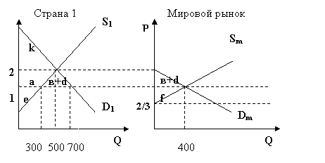 = 600 (тыс. шт.), выигрыш (рента) потребителя равнялся площади фигуры k+a+b+c+d, выигрыш (рента) производителя равнялся площади фигуры e.