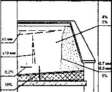 В асфальтобетонных основаниях под кровлю обязательны температурно-усадочные швы шириной 10 мм, разделяющие стяжку на участки размером не более 4x4 м. Швы образуются укладкой деревянных реек толщиной 10 мм. После устройства стяжки рейки удаляют, а швы заполняют мастикой.