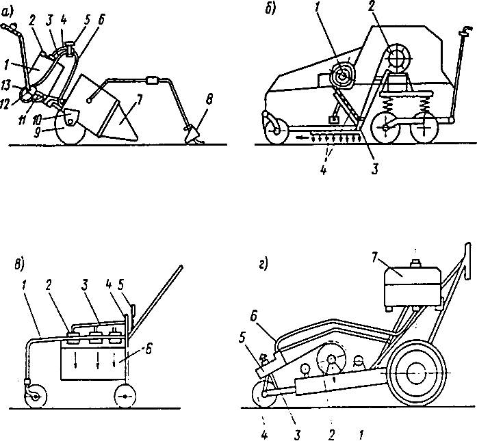 мотокары или тележки на пневмоходу для доставки мастики и рулонных материалов к месту работ;