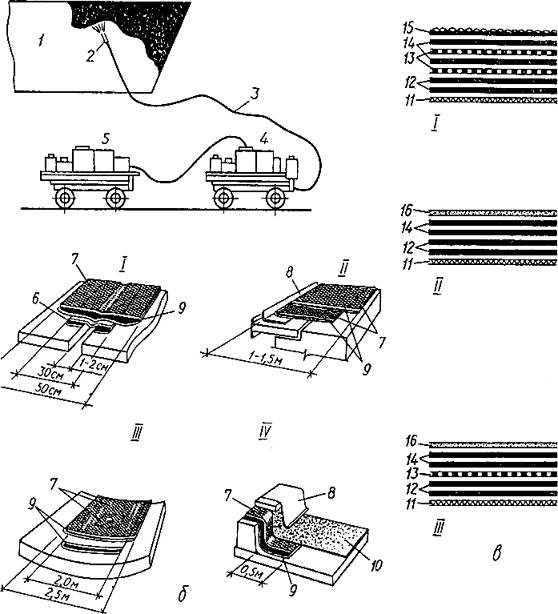 В зимнее время в построечных условиях рекомендуется с использованием горячих мастик наклеивать только один слой рулонного ковра. Температура горячей битумной мастики должна быть не ниже 180 °С, дегтевой - не ниже 140 °С. На холодных мастиках разрешается клеить все полагающиеся по проекту слои, при этом холодные мастики следует подогревать до температуры 70-80 °С. Укладывать слои рулонного материала на холодных мастиках по основанию из асфальтобетона запрещается.